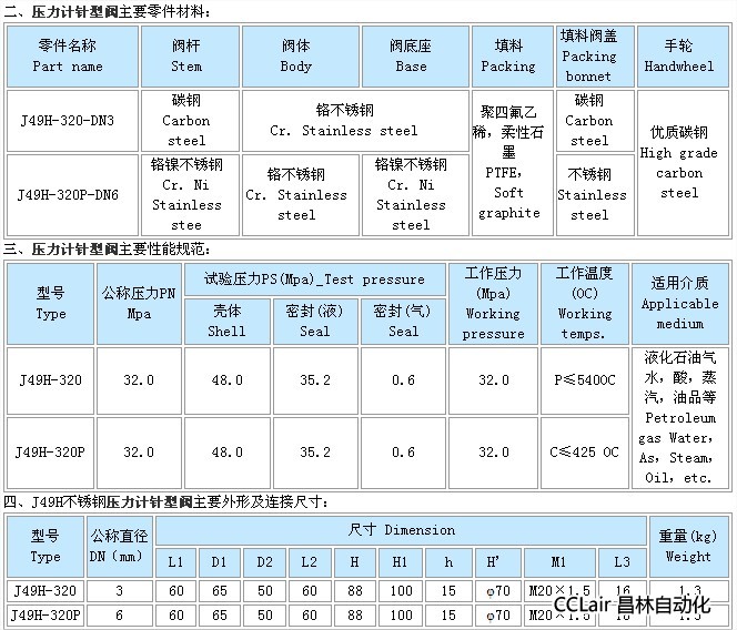 J49H-320,J49H-320P,壓力計(jì)針型閥