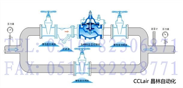 400X流量控制閥由主閥、流量調(diào)節(jié)閥、針閥、導(dǎo)閥、球閥、微形過濾器和壓力表組成水力控制接管系統(tǒng)。利用水力自動(dòng)操作,控制和調(diào)節(jié)主閥開度,使通過主閥的流量保持不變。