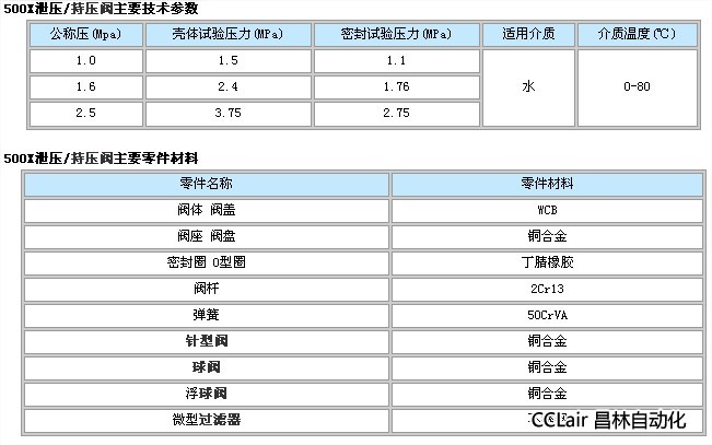 500X泄壓/持壓閥用途