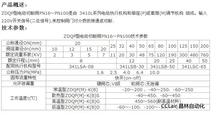 ZDQP-16,ZDQP-25,ZDQP-40C,ZDQP-64,ZDQP-100,電動切斷閥