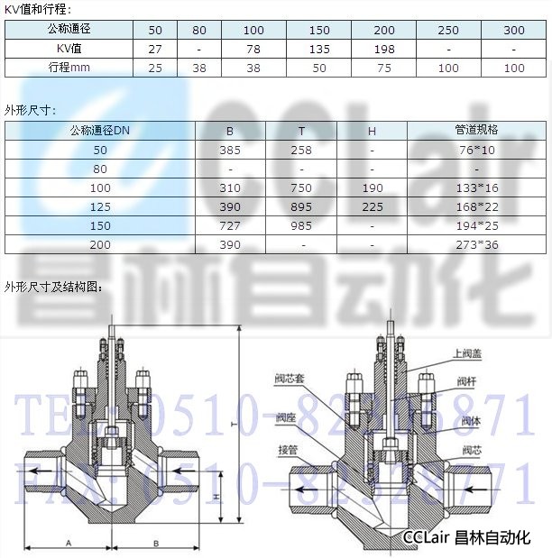 閥芯形式:壓力平衡串級式;流量特性 等百分比特性;套筒形式:分離式