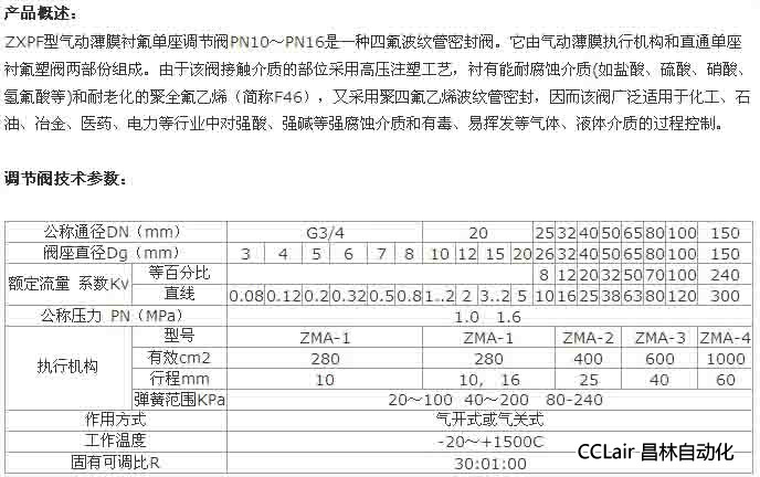 ZXPF-10,ZXPF-16,氣動薄膜襯氟單座調(diào)節(jié)閥
