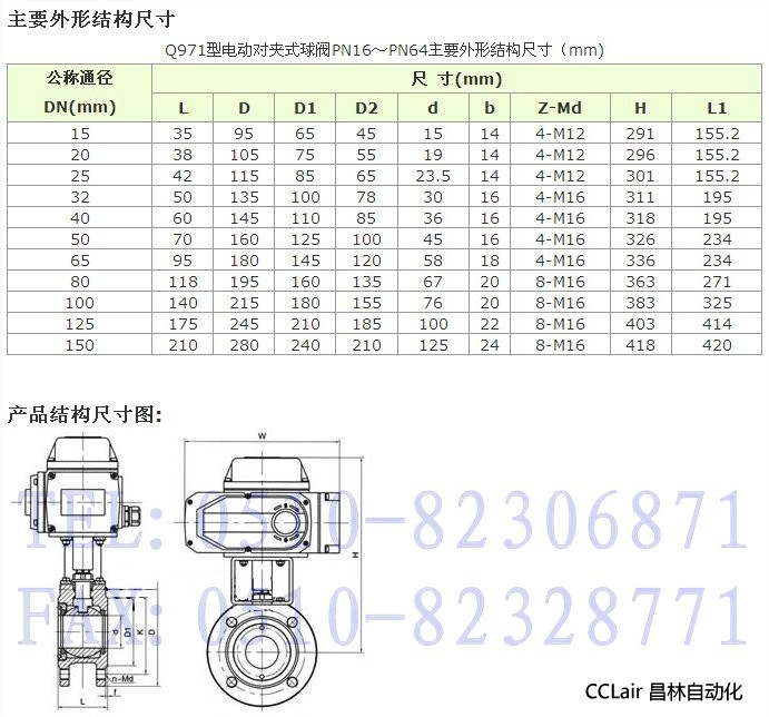 Q971-16,Q971-25,Q971-40,Q971-64,電動(dòng)對夾式球閥