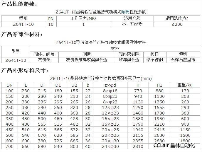 Z641T-10,鑄鐵法蘭連接氣動(dòng)楔式閘閥
