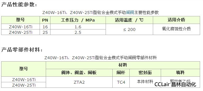 產(chǎn)品說明 Z40W-16Ti、Z40W-25Ti 型鈦合金楔式閘閥:手動、法蘭連接、明桿楔式彈性閘板,閥座密封面材料為鈦合金,工作壓力 1.6-2.5MPa,閥體材料為 ZTA2 鈦合金的閘閥。因為鈦和氧有很好的親和力,極易與氧反應而在其表面生成一層堅固而致密的鈍性氧化薄膜,對許多腐蝕介質(zhì)都呈現(xiàn)出特別優(yōu)異的耐腐蝕性。