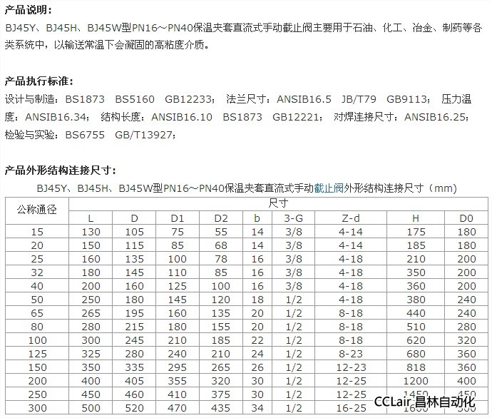 BJ45H-16,BJ45H-25,BJ45H-40,BJ45Y-16,BJ45Y-25,保溫夾套直流式手動截止閥