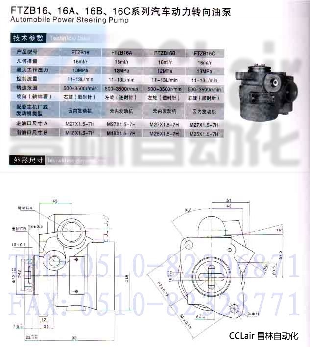 FTZB16,FTZB16A,FTZB16B,FTZB16C,汽車動力轉(zhuǎn)向油泵