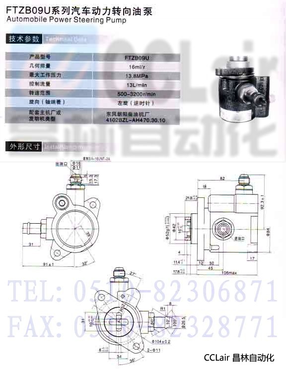 FTZB09U,汽車動力轉(zhuǎn)向油泵