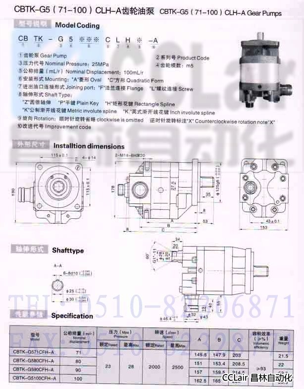 CBTK-G571CLH-A,CBTK-G580CLH-A,CBTK-G590CLH-A,CBTK-G5100CLH-A,齒輪油泵