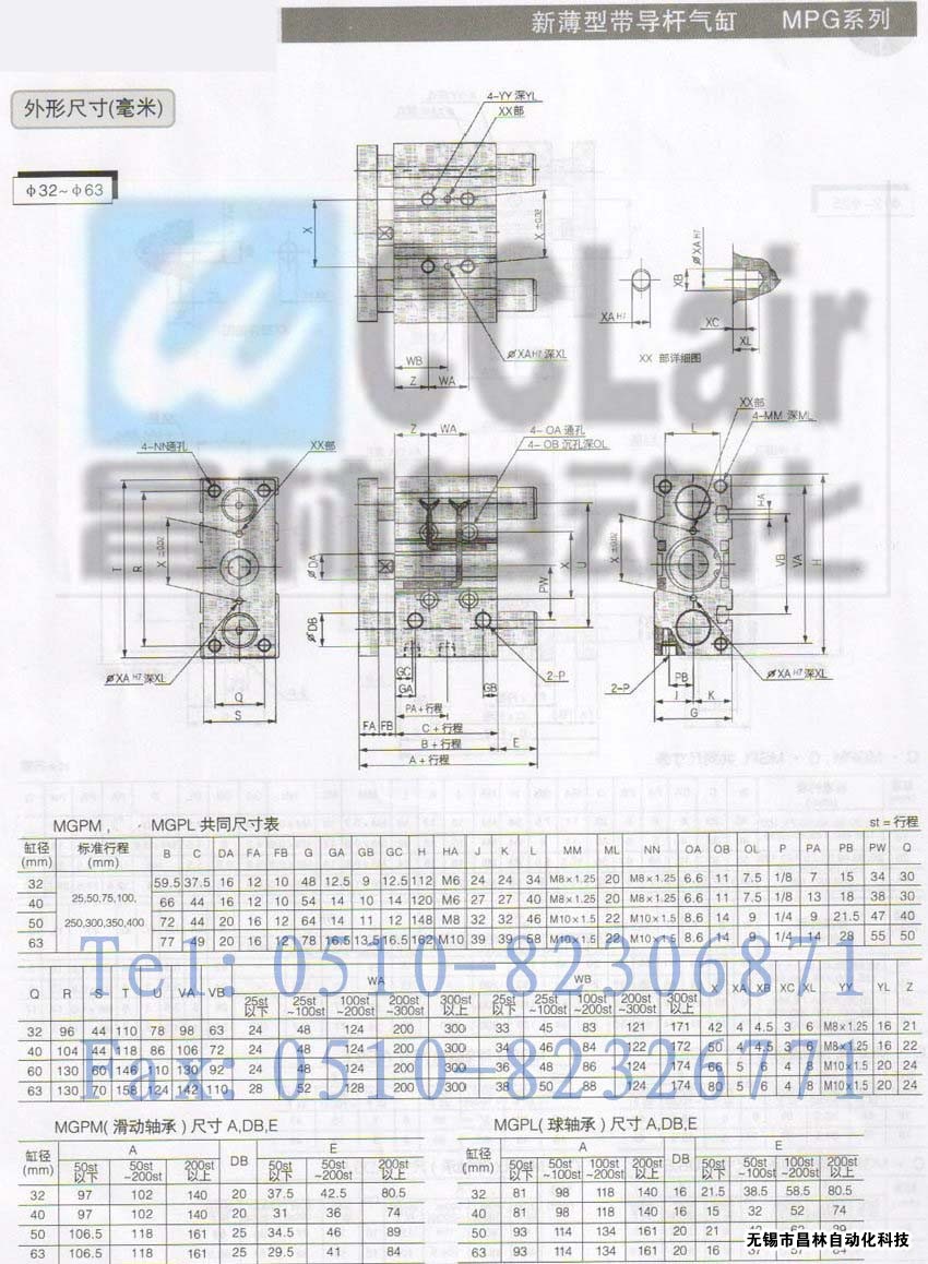 MGPL63TF-125,MGPL63TF-150,MGPL63TF-175,MGPL63TF-200,新薄型帶導(dǎo)桿氣缸,生產(chǎn)廠家,價格,