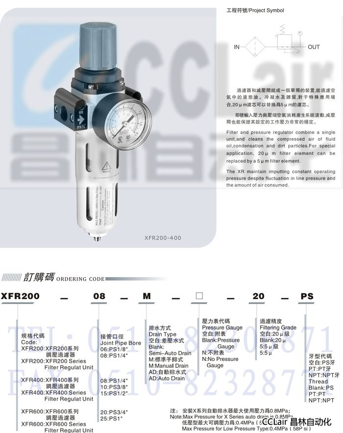 XFR200-06,XFR200-08,XFR400-08,XFR400-10,XFR400-15,XFR600-20,XFR600-25,調(diào)壓過(guò)濾器