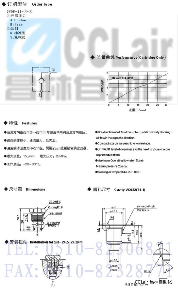 CV08-21-A-N,CV08-21-B-N,CV08-21-A-V,CV08-21-B-V,逆流單向閥