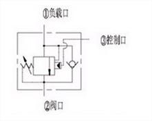此閥允許液流從②到①自由流動(dòng),同時(shí)阻止其反向流動(dòng),若先導(dǎo) 口③壓力按比例增加,則①到②流量也按比例增加。