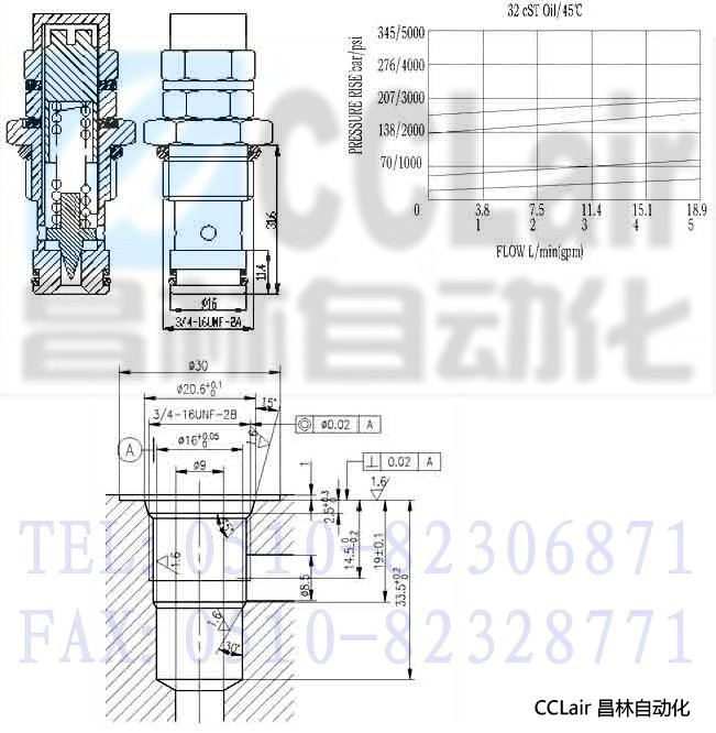 當(dāng)P口壓力未達(dá)到彈簧設(shè)定壓力的85%時(shí),P到T不通超過(guò)85%并繼續(xù)升高時(shí),P到T開(kāi)始溢流,直到彈簧的最高設(shè)定壓力。