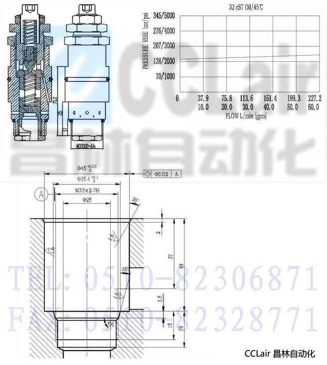 當(dāng)P口壓力未達(dá)到彈簧設(shè)定壓力的90%時,P到T不通超過90%并繼續(xù)升高時,P到T開始溢流,直到彈簧的最高設(shè)定壓力。