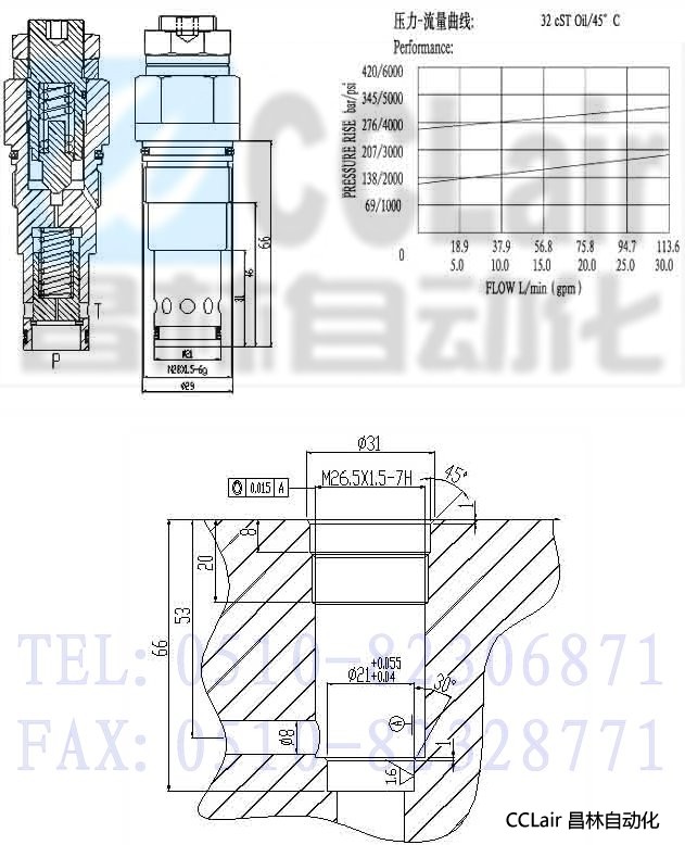 當P口壓力未達到彈簧設(shè)定壓力的90%時,P到T不通超過90%并繼續(xù)升高時,P到T開始溢流,直到彈簧的最高設(shè)定壓力。