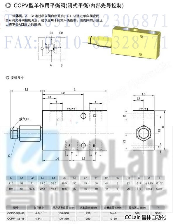 CCPV-3/8-48,CCPV-1/2-48,單作用平衡閥(閉式平衡/內(nèi)部先導(dǎo)控制)