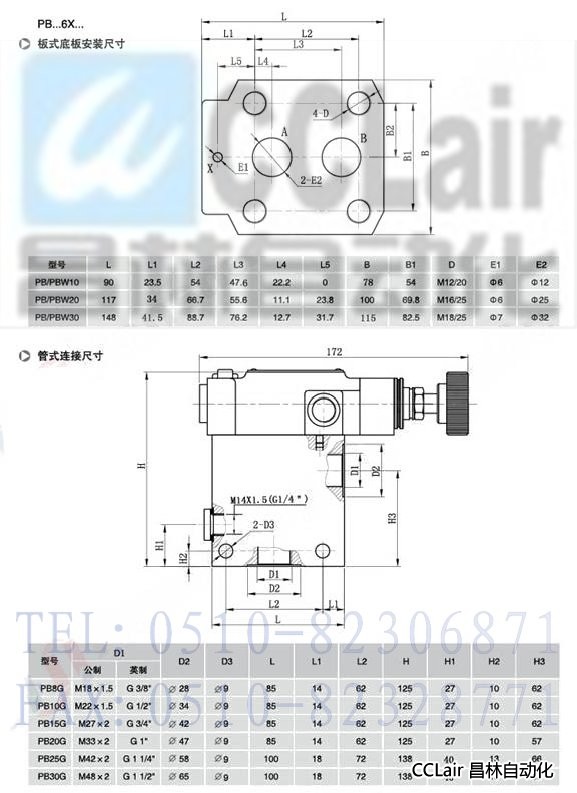 PB10,PBW10,PB20,PBW20,PB30,PBW30,先導式溢流閥(板式)