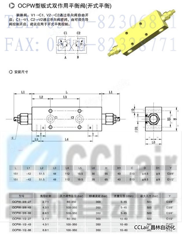 OCPW-3/8-27,OCPW-3/8-43,OCPW-3/8-88,板式雙作用平衡閥(開式平衡)
