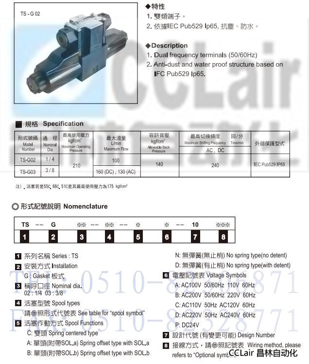 TS-G03-2C,TS-G03-3C,TS-G03-4C,TS-G03-44C,TS-G03-5C,TS-G03-66C,電磁作動(dòng)方向控制閥