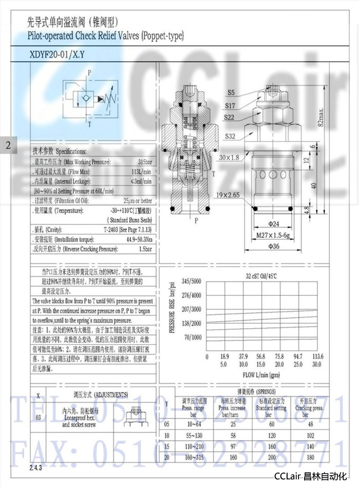XDYF20-01,先導(dǎo)式單向溢流閥