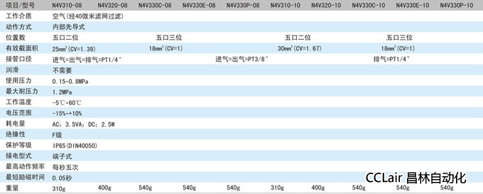 質(zhì)為經(jīng)過過濾干燥的清潔空氣、工作壓力為0.15~0.8MPa。N4V300系列電磁閥廣泛應(yīng)用于氣動系統(tǒng)中,