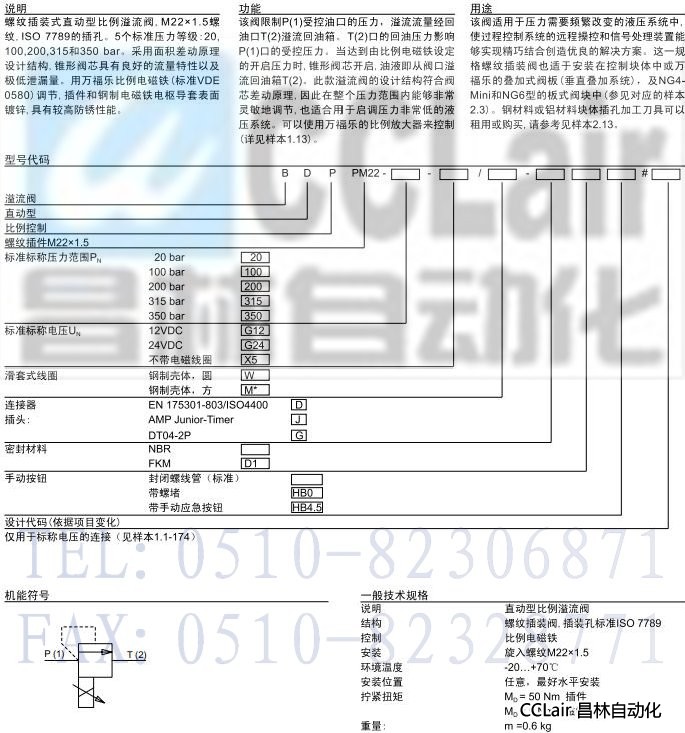 BDPPM22,直動式比例壓力溢流閥 (滑套式線圈)