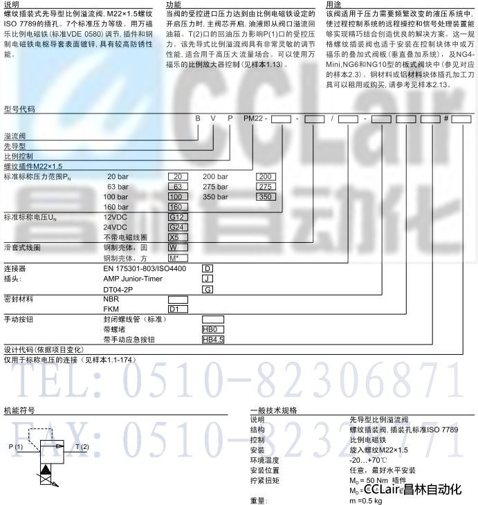 BVPPM22,BVPPM22-200-G24,先導式比例壓力溢流插裝閥(滑套式線圈)