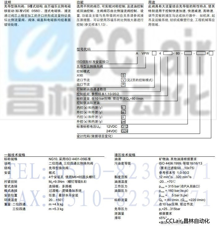 AVPW4x10,先導(dǎo)式比例換向閥