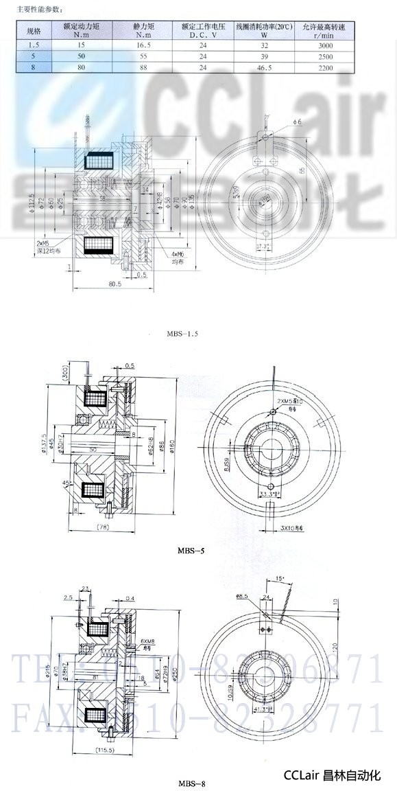 MBS-1.5,MBS-5,MBS-8,電磁失電離合器