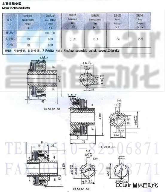 DLM0M-3B,DLM0K-5B,DLM0Z-5B,銑床專用離合(制動)器