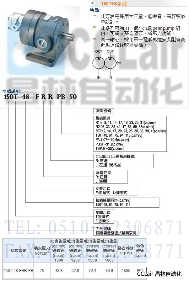 150T-48-FRR,150T-48-FRL,150T-48-FLR,150T-48-FLL,固定容量雙聯(lián)式輪葉泵浦 |