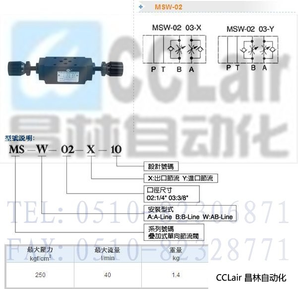 MSW-02-X-10,MSW-02-Y-10,疊加式單向節(jié)流閥