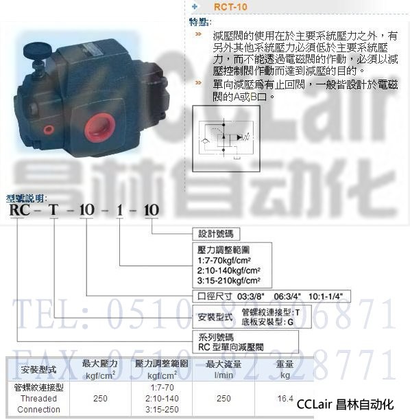 RCT-10-1-10,RCT-10-2-10,RCT-10-3-10,單向減壓閥