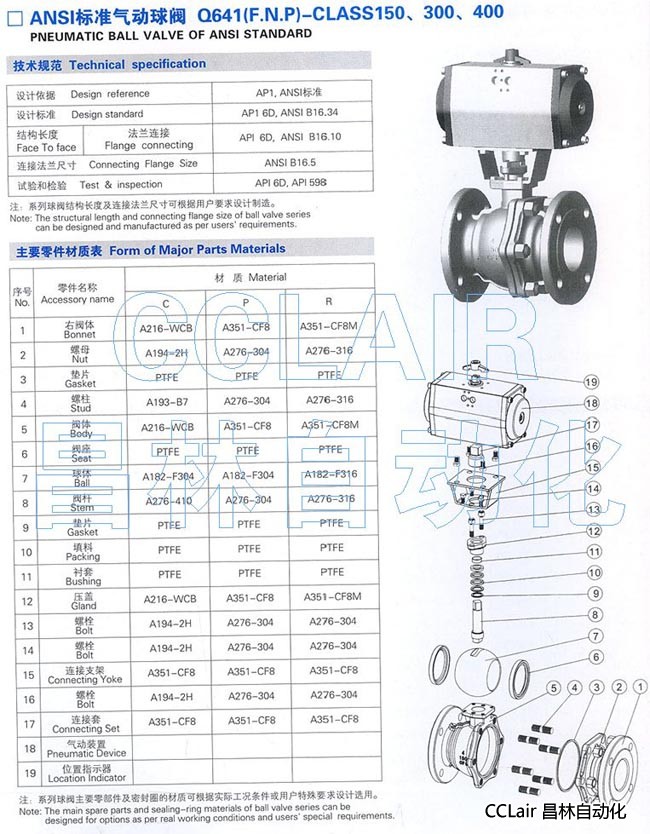 Q641F-150,Q641F-300,Q641F-400,標準氣動球閥