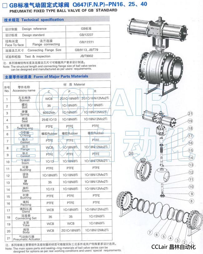 Q647F-16,Q647F-25,Q647F-40,標(biāo)準(zhǔn)氣動(dòng)固定式球閥
