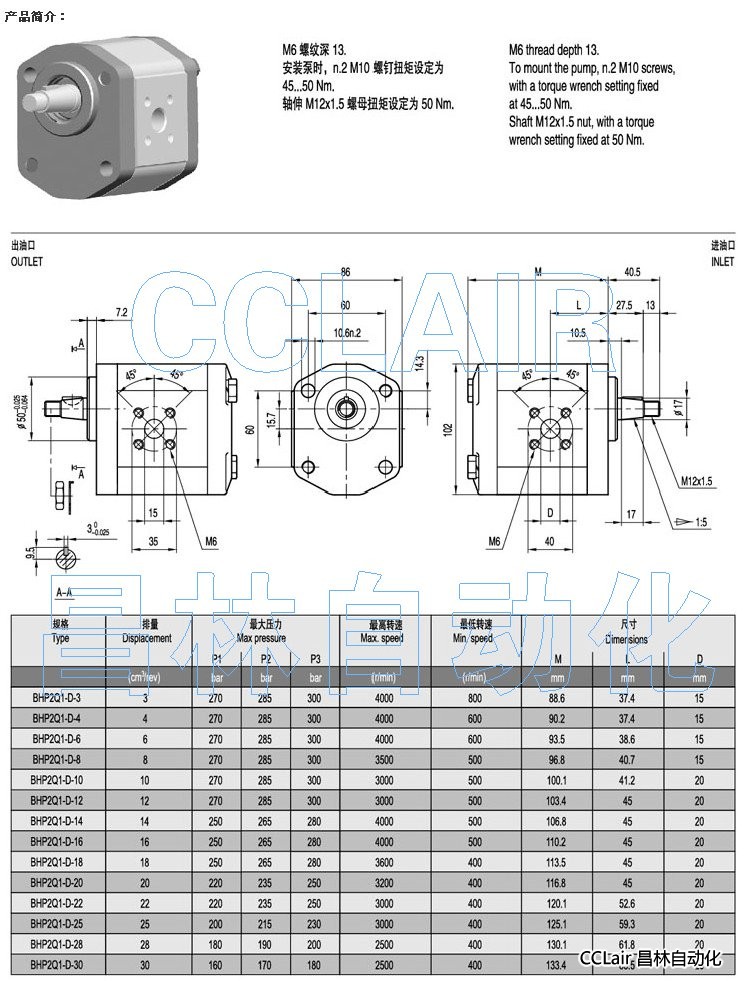 BHP2Q1-D-3,BHP2Q1-D-4,BHP2Q1-D-6,BHP2Q1-D-8,齒輪泵