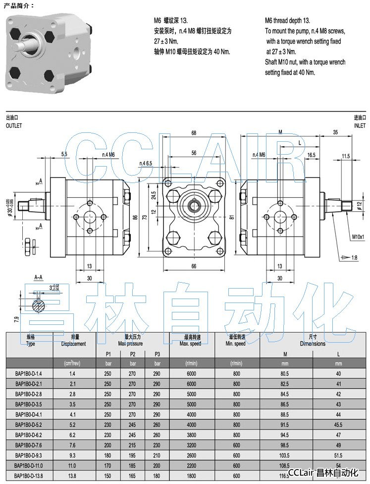BAP1B0-D-1.4,BAP1B0-D-2.1,BAP1B0-D-2.8,齒輪泵