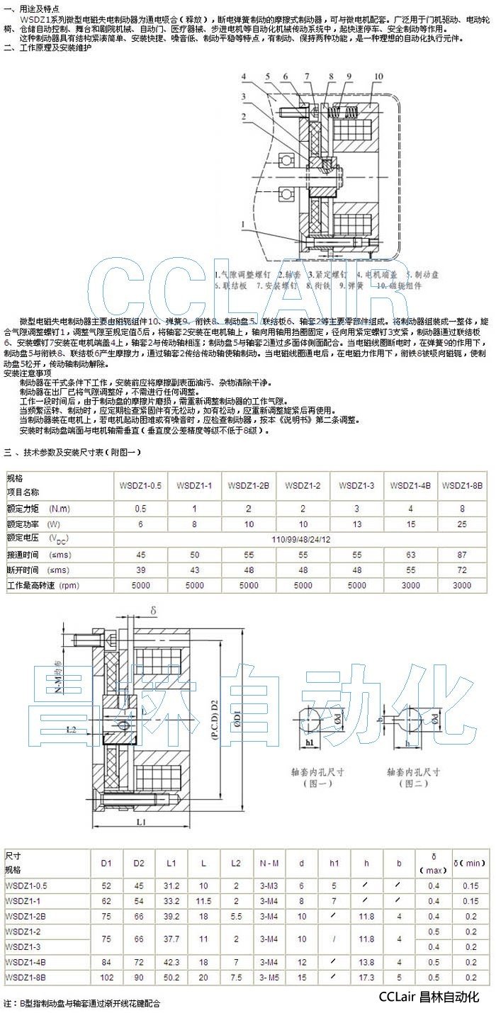 WSDZ1-0.5,WSDZ1-1,WSDZ1-2B,WSDZ1-2,微型電磁失電制動(dòng)器