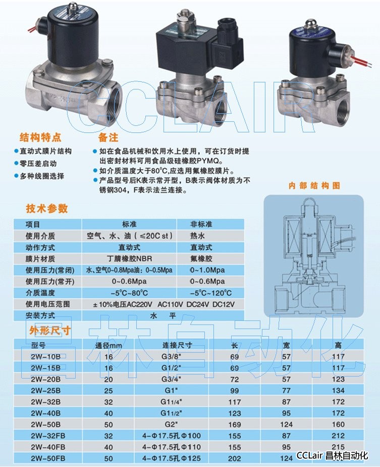 2W-10B,2W-15B,2W-20B,2W-25B,2W-32B,2W-40B,2W-50B,直動(dòng)式膜片電磁閥