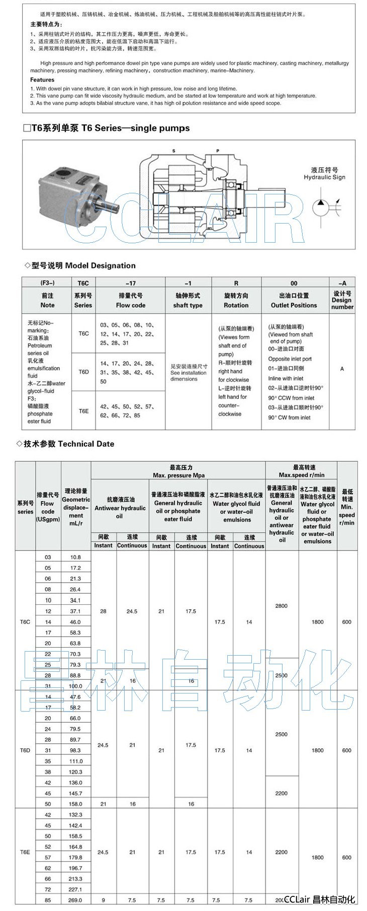 T6E-52-2R02-A1,T6E-52-1L02-A1,T6E-52-2L02-A1,單聯(lián)葉片泵