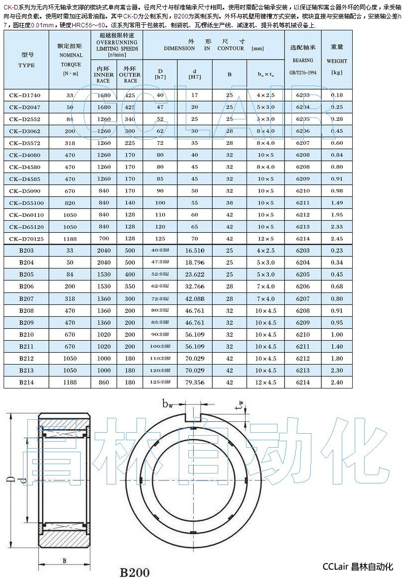 CK-D1740,CK-D2047,CK-D2552,CK-D3062,單向離合器