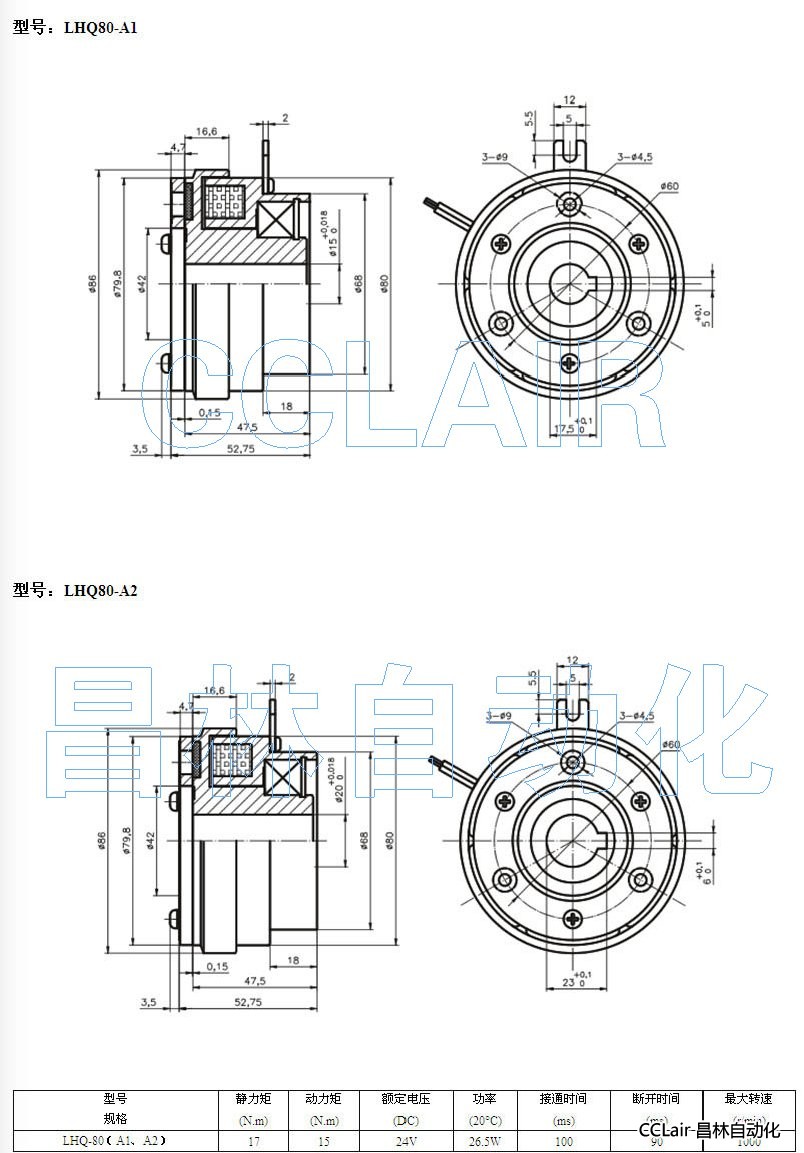 LHQ80-A1,LHQ80-2,單片電磁離合器