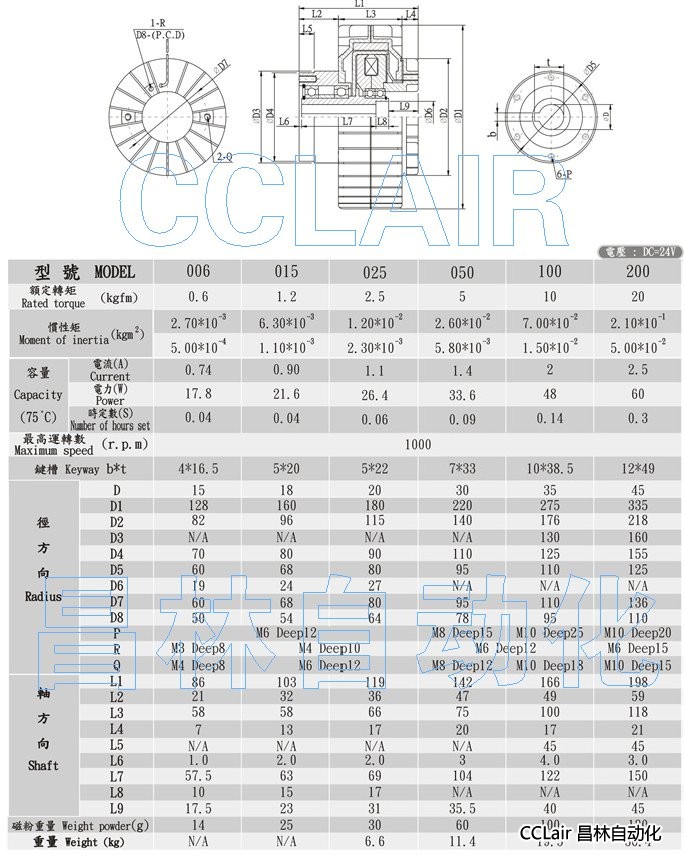 EPC-K-006,EPC-K-015,EPC-K-025,中空旋轉型磁粉離合器