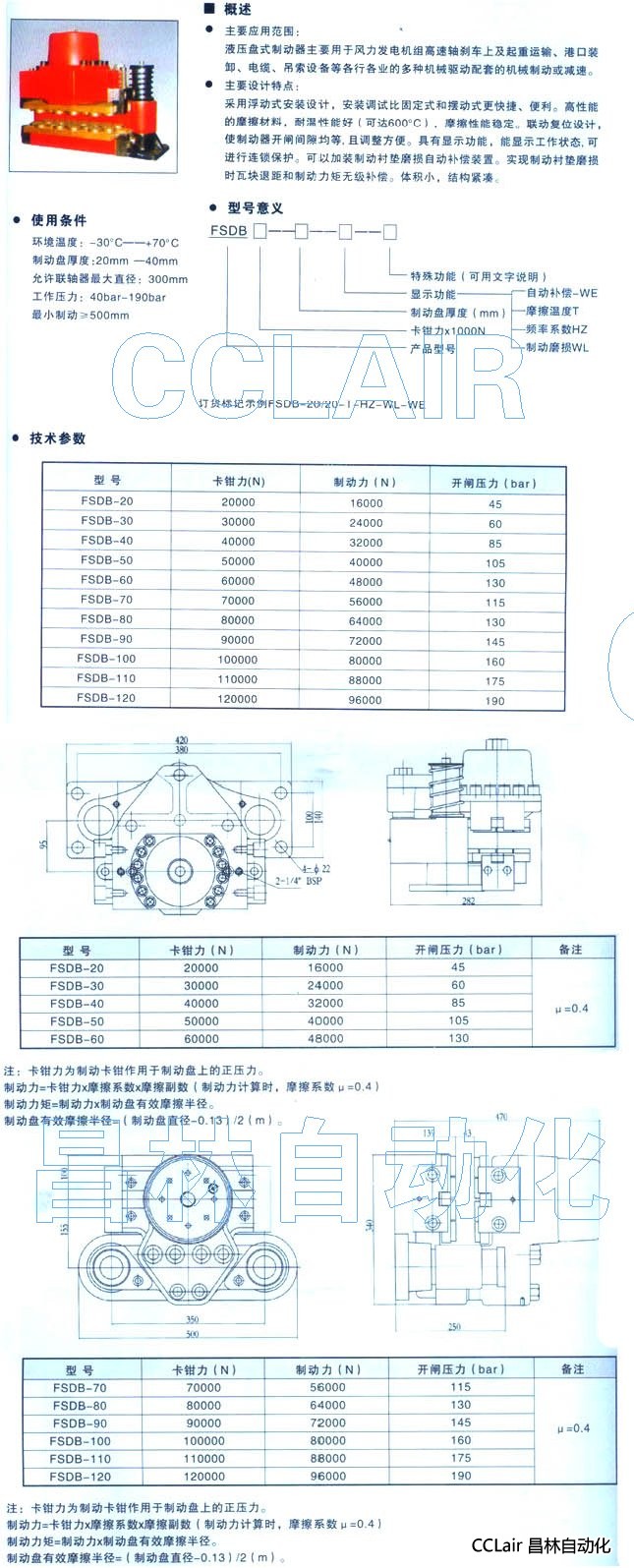 FSDB-20,F(xiàn)SDB-30,F(xiàn)SDB-40,F(xiàn)SDB-50,F(xiàn)SDB-60,F(xiàn)SDB-70,單簧浮動(dòng)式制動(dòng)器