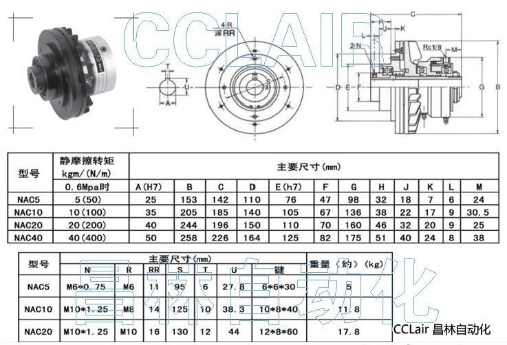 NAC6,NAC10,NAC20,NAC40,(標準型)空壓通軸式離合器