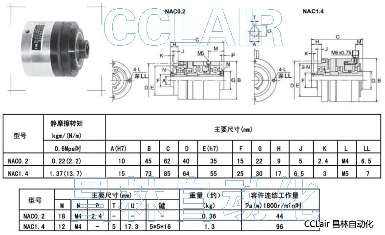 NAC0.2,NAC1.4,(微型)空壓通軸式離合器