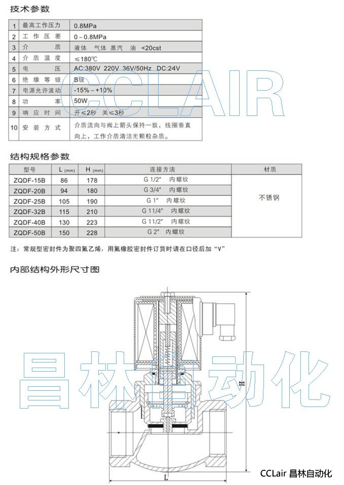 ZQDF-15B,ZQDF-20B,ZQDF-25B,ZQDF-32B,不銹鋼通用電磁閥ZQDF-40B,ZQDF-50B,無錫昌林,