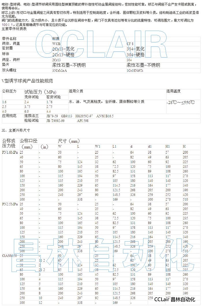 VQ977H-16P,電動V型球閥,電動V型調(diào)節(jié)球閥