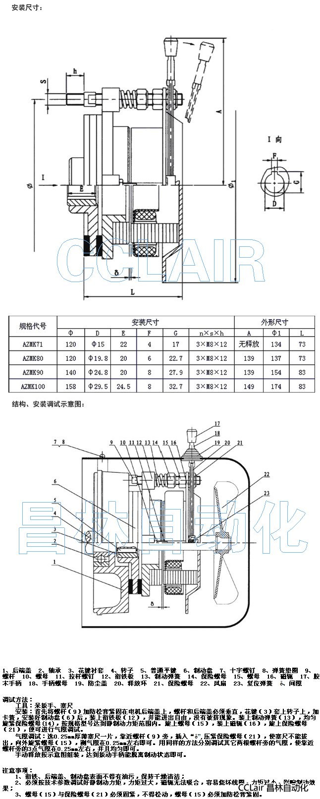 AZMK系列三相交流制動(dòng)器,產(chǎn)品結(jié)構(gòu)緊湊,制動(dòng)力矩和間隙調(diào)節(jié)方便。手動(dòng)釋放可利用手柄向后一扳,制動(dòng)器就可臨時(shí)脫開制動(dòng)狀態(tài),操作方便可靠。